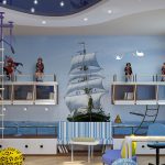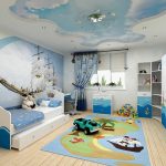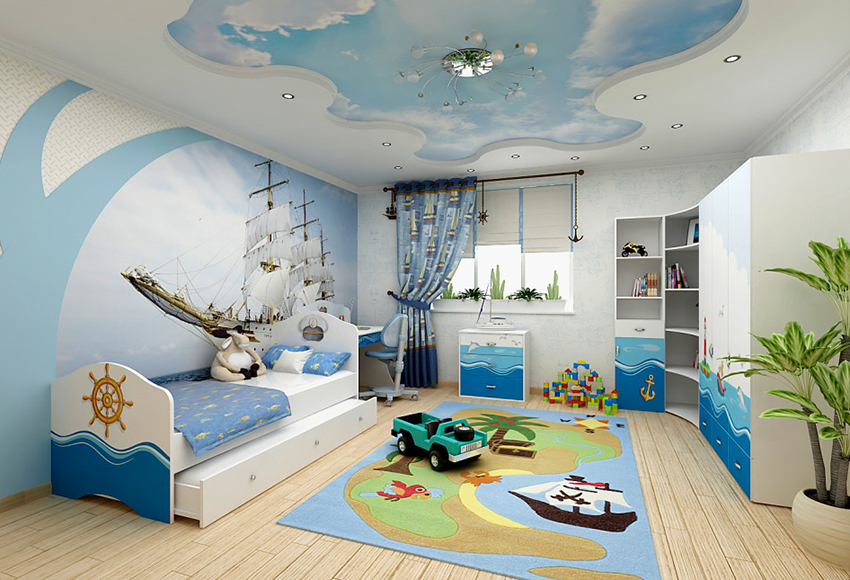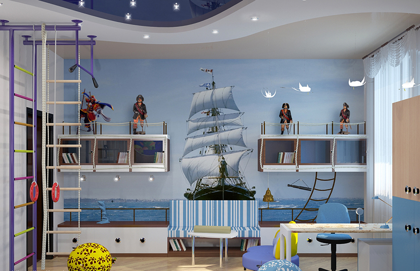 Many schoolchildren are fond of the marine theme. To bring such a design to life, you should stick to the shades of the sea wave and tones close to it. Mermaids are not interesting for boys, but sailboats, pirates and the underwater world will be just right.