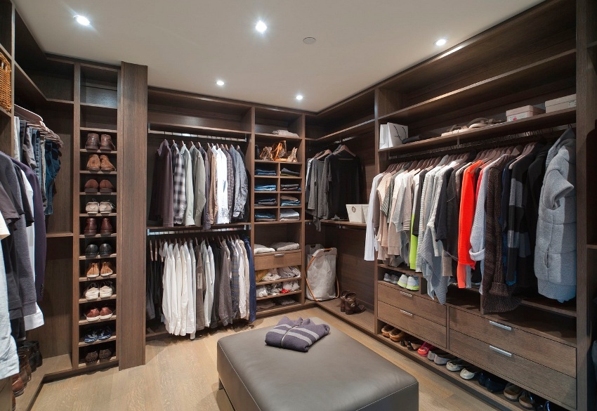 Helpful advice! When arranging a dressing room, combinations of various filling elements will help to maximize the use of space.