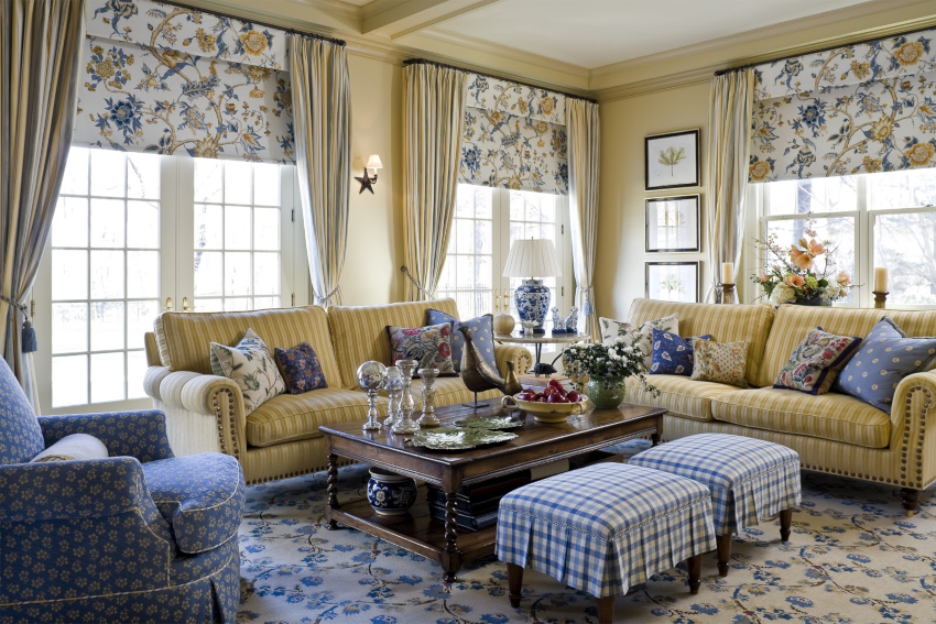 The formation of English country was influenced by the Victorian era, which can be traced in the abundance of textiles in the form of checkered rugs, woven rugs with traditional patterns, bedspreads made using the patchwork technique.The main colors for interior decoration are cream, green, terracotta, gray, pink and brown.