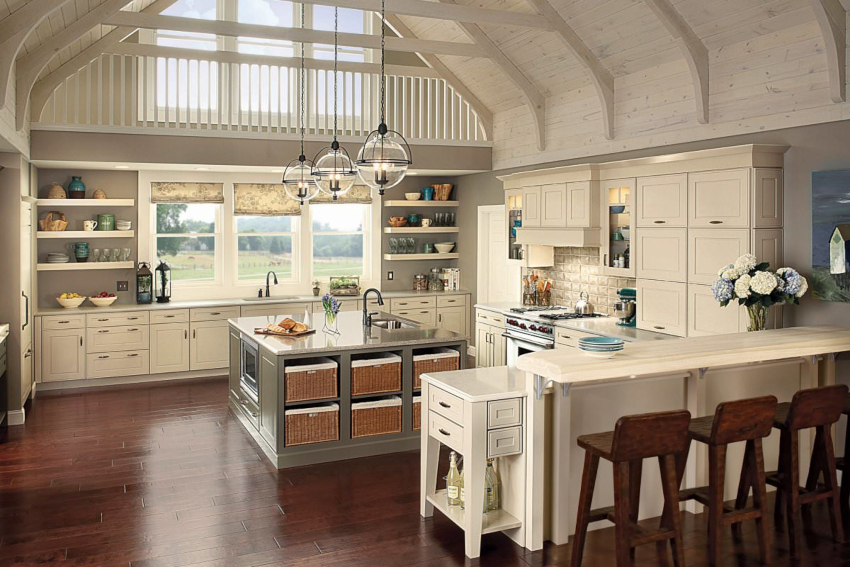 Important! In a country-style kitchen, the use of glass countertops in the work area or plastic on the ceiling is excluded.