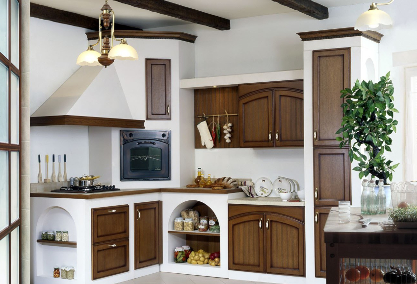Country-style kitchen interior: the warmth and comfort of the hearth