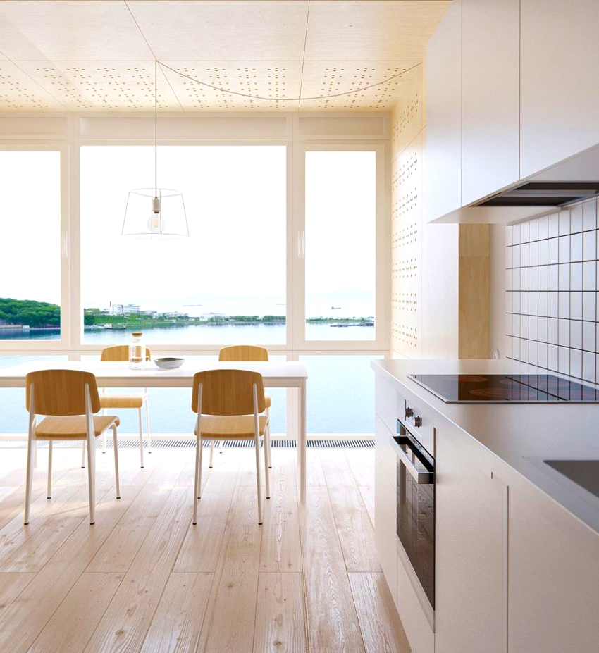Straight lines, smooth textures and solid colors all combine to create a calm atmosphere. Due to the lack of decor and protruding elements, a minimalist kitchen is easy and simple to clean, which means that order and harmony will always reign here.