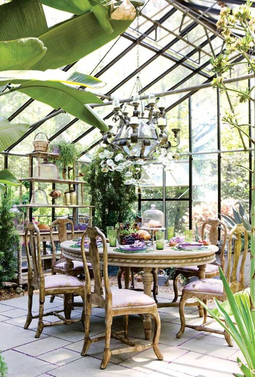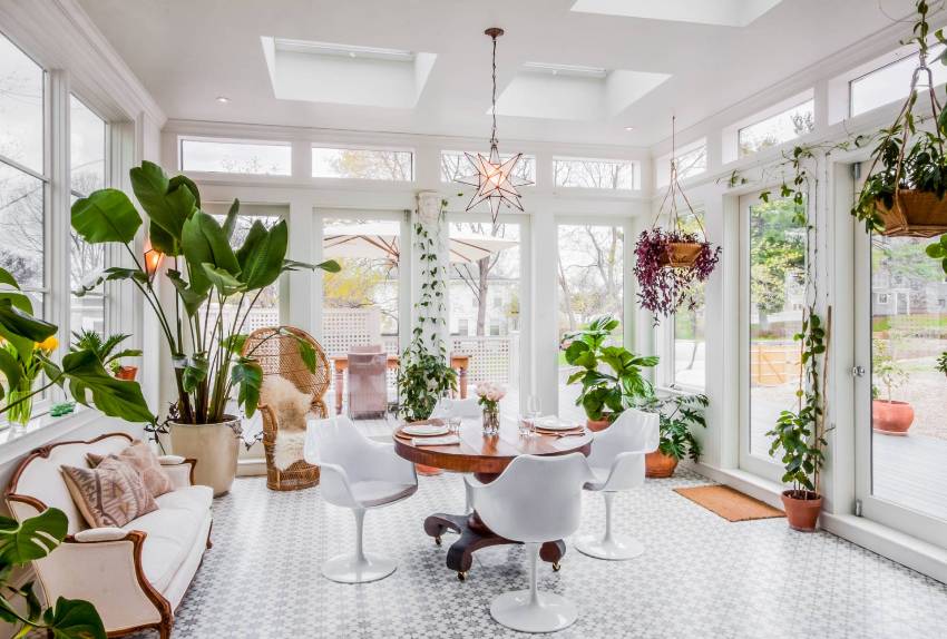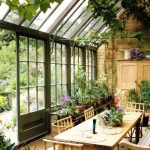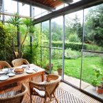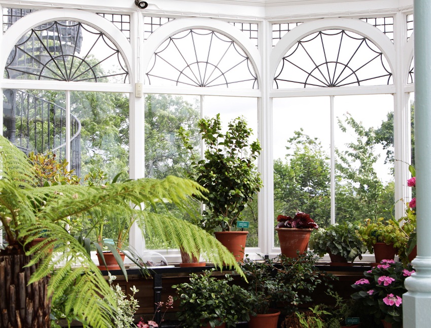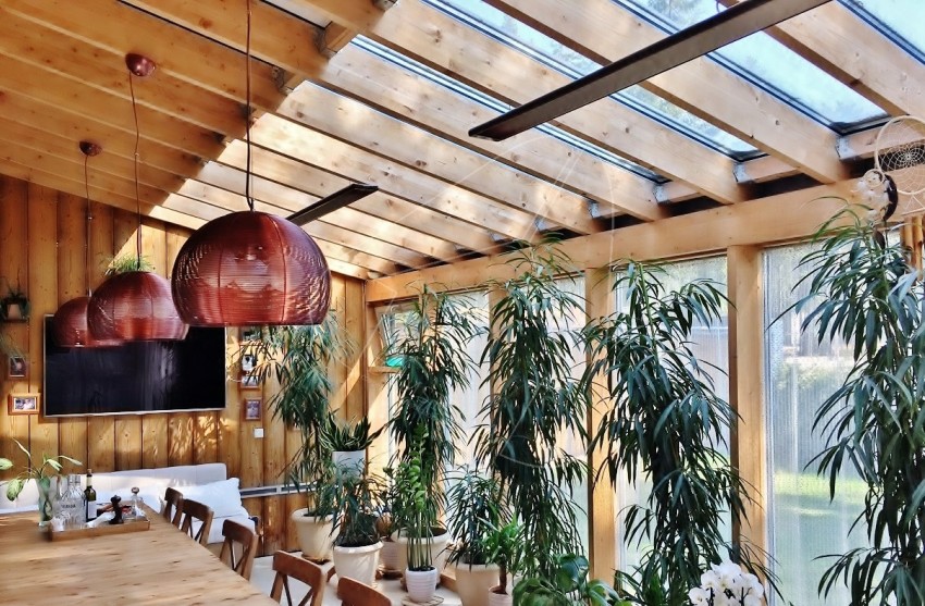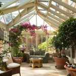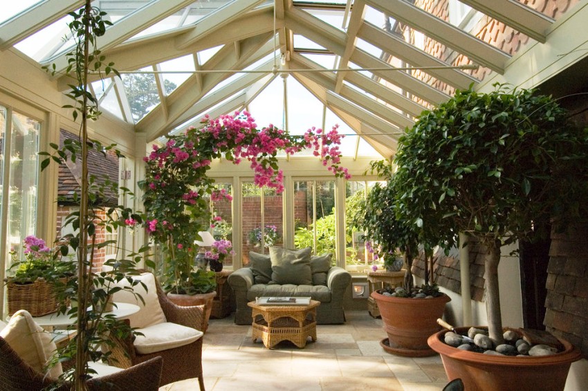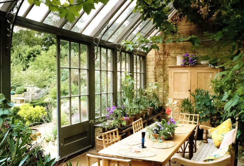 A winter garden in a private house is a specially designated room or part of a room, fully or partially glazed. This could be a living room or a dining room.