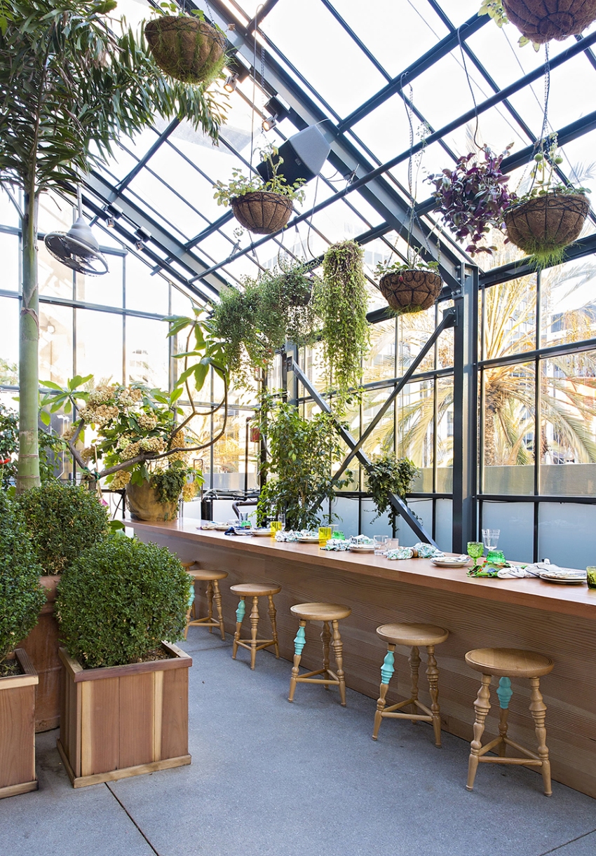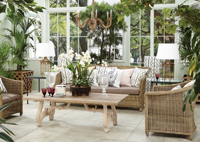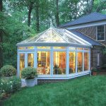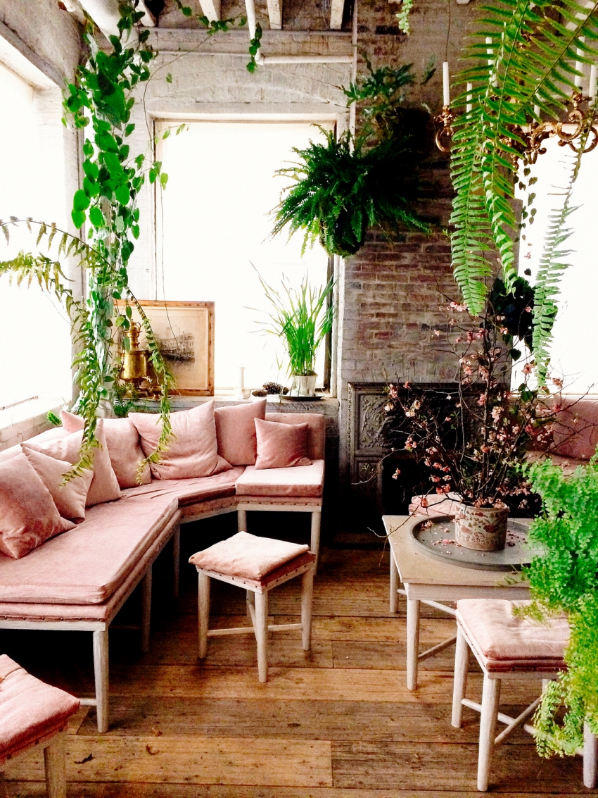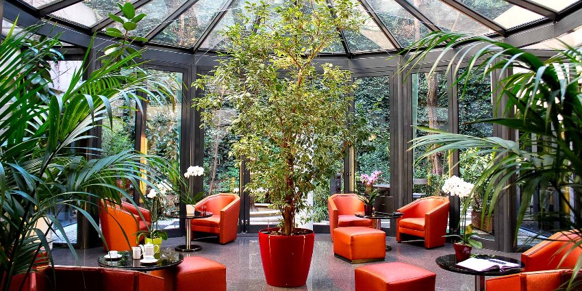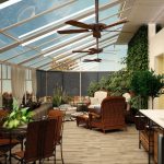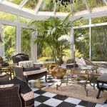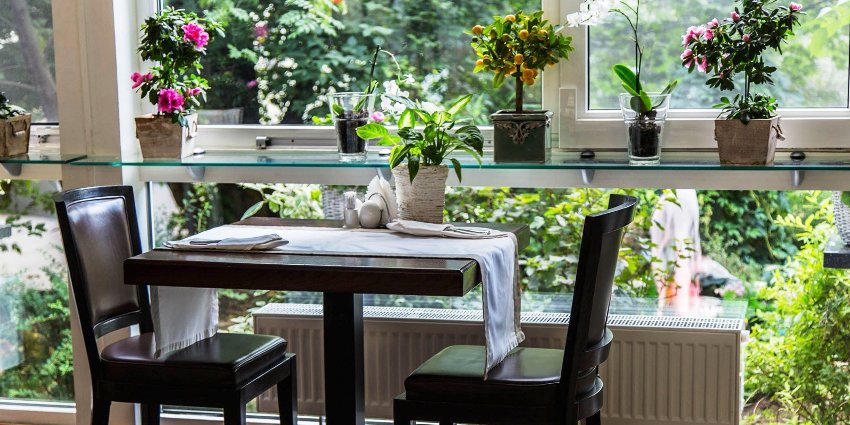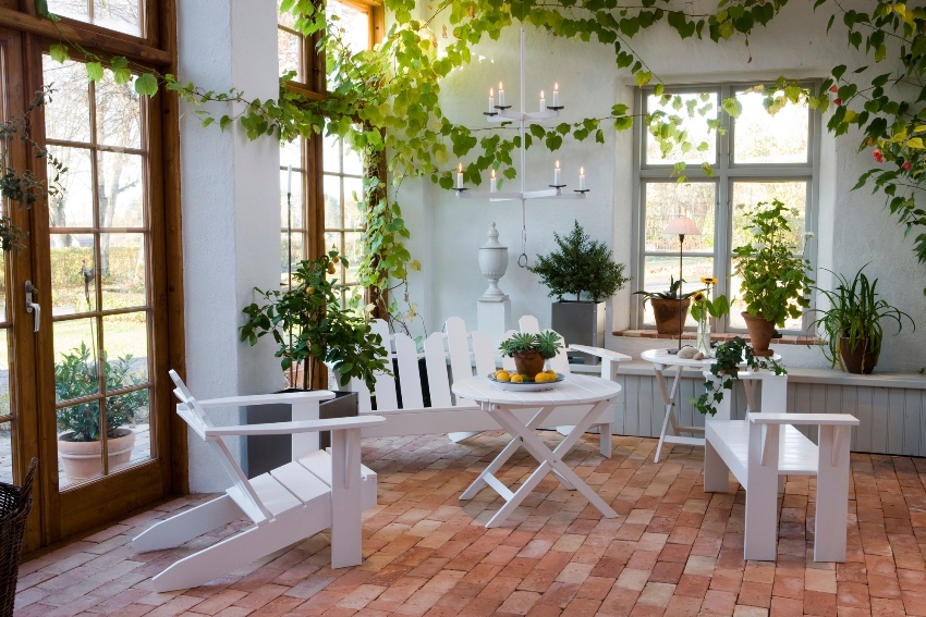 A winter garden in a private house is a specially designated room or part of a room, fully or partially glazed. This could be a living room or a dining room.