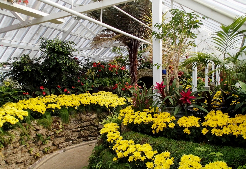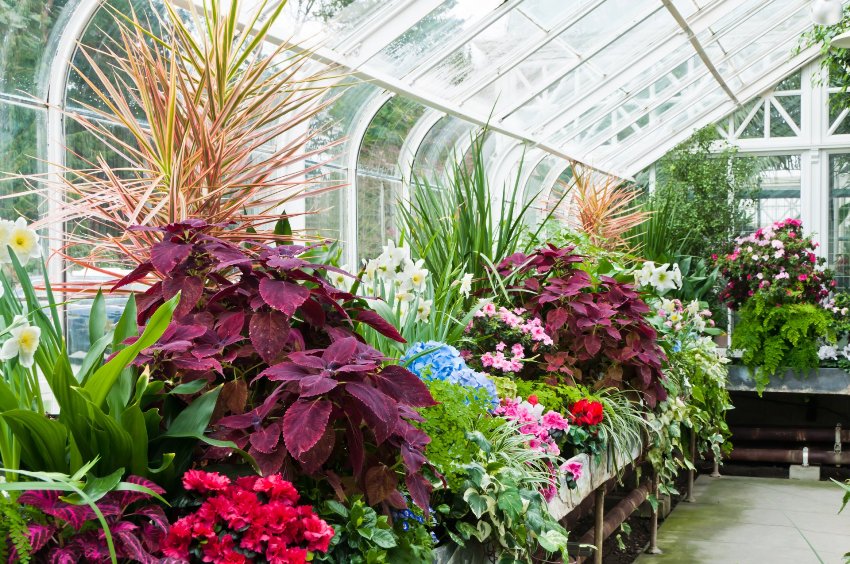 In winter, they prefer primrose, Kalanchoe, daffodils and tulips. With the appearance of spring heat, hyacinths, lilies, hydrangeas, pelargoniums, astilbe, schizanthus are additionally planted. In the summer, one bulbous is replaced by another. Oriental and Asian lilies, begonias, zinnias, perilla, vinca, salfia, echinacea grow well. Autumn is the time of cyclamens, kochii, gomphenes, chrysanthemums. With this approach, exotic flowers will be fragrant in the winter garden all year round.