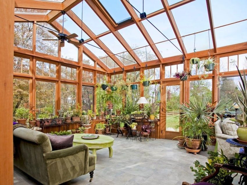 The main purpose of the winter garden at home is to give pleasure from contemplating the lush greenery of small trees, the beauty of bright flowers and their fragrance. The microclimate of the garden under glass is selected rationally, having a positive effect on both cultivated plants and the well-being of people. Such harmony can be created only on condition of strict observance of all construction and improvement rules.