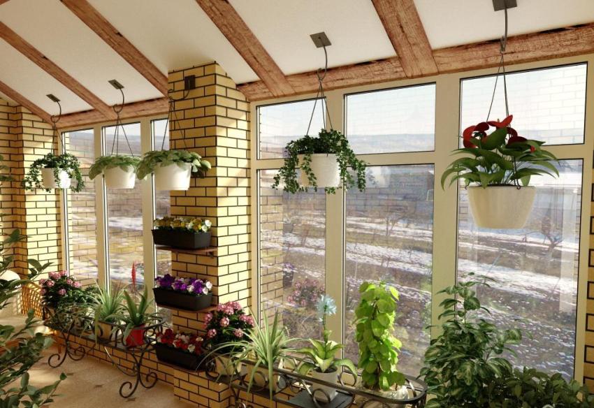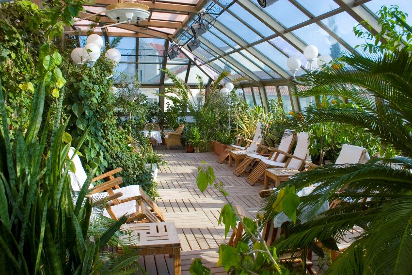 Thanks to heaters, a stable temperature is established in the winter garden, suitable for growing certain plants