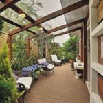 Water heating is often used to heat conservatories and terraces in a private house. Such a system implies connection to the main heating system, which allows you to maintain a constant temperature, without differences between living rooms and the garden. This terrace is a great place to relax. The location of heating pipes along the walls protects the walls and roof from icing.