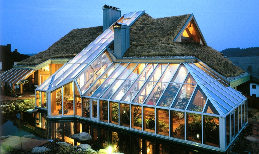 There are many projects of houses with a winter garden, which imply their construction along with the main room, but glass extensions for growing plants are more popular.