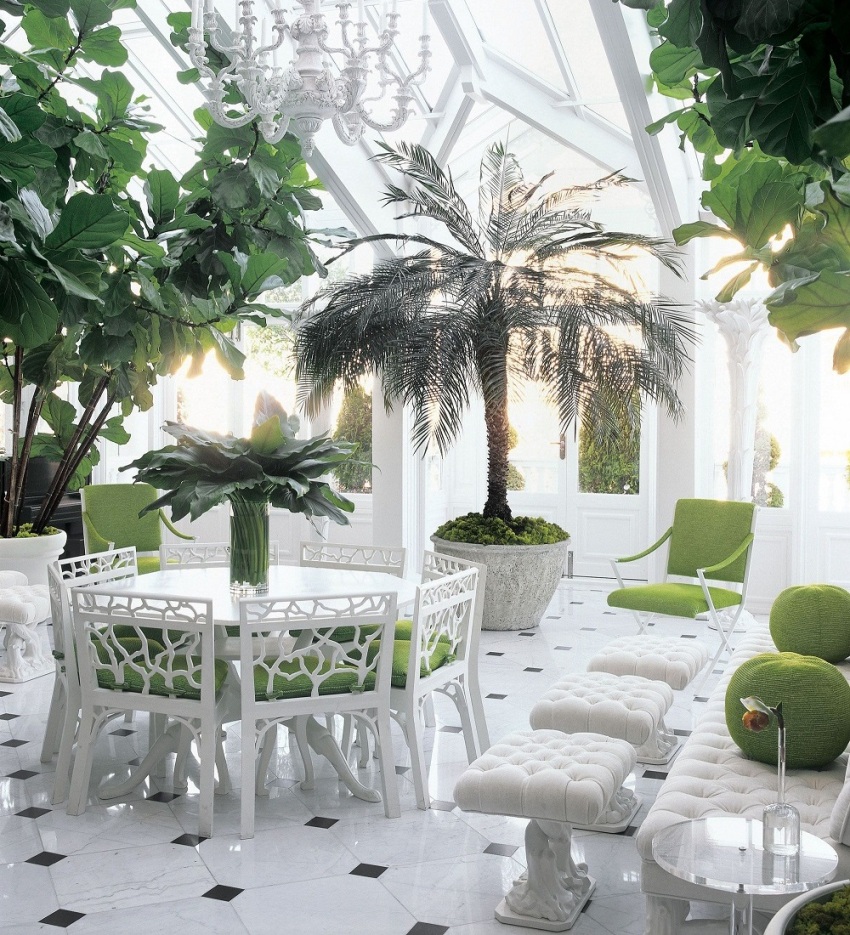 The aesthetic function of the winter garden implies conformity with style. There are several of the most common winter garden styles.