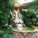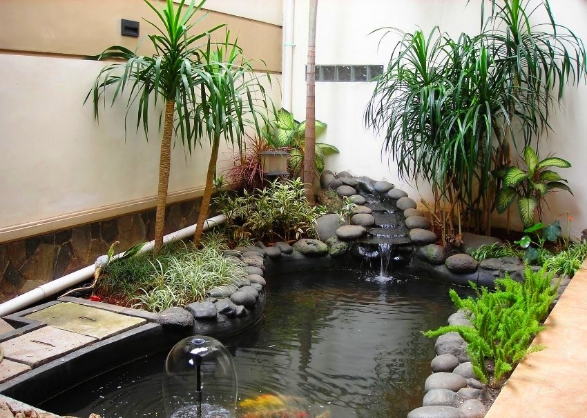 For water-loving plants that require irrigation of the vegetative part, special fountains are installed. The devices simultaneously humidify the air and serve as a garden decoration. Excess water must go through an equipped drainage system.