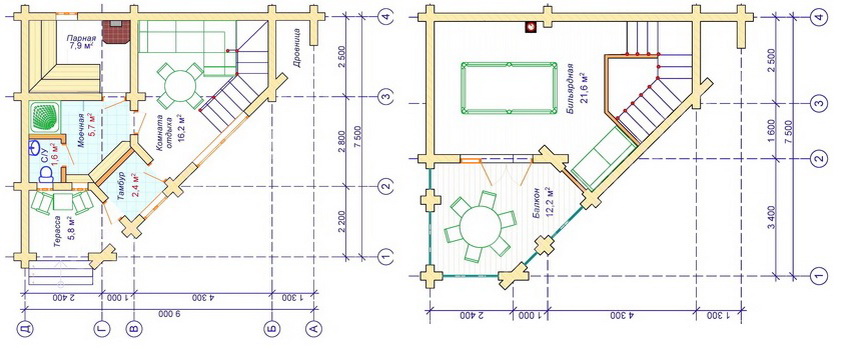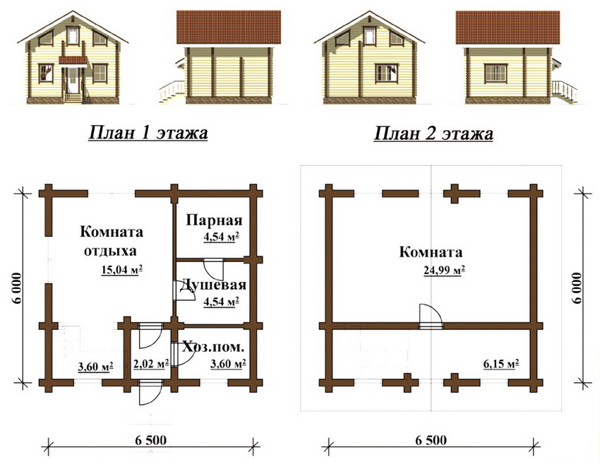 The advantage of two-story buildings or baths with an attic in front of projects of one-story buildings lies in more extensive planning possibilities. The additional space can be used to organize areas for leisure and relaxation.