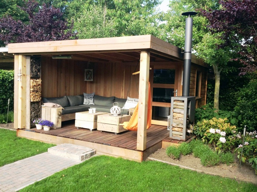 The closed gazebos have full walls, windows and an entrance door. Such structures are made in the form of small houses, where in the summer you can organize a summer kitchen, a bedroom, and in winter various things are stored here. The semi-closed type of construction is equipped with two or three walls. Such a gazebo is characterized by good air circulation, but you can hide from drafts in it.