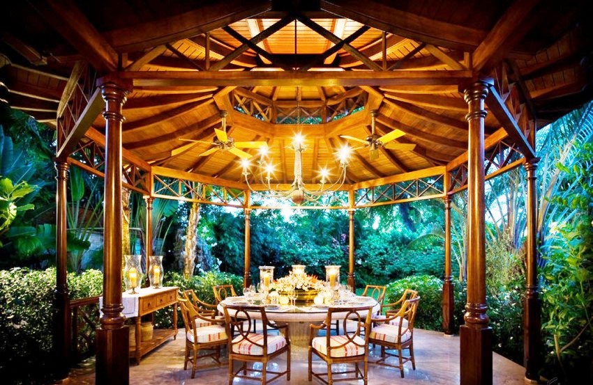 A gazebo made of timber is very popular with many owners of suburban areas. This is primarily due to the environmental friendliness of the material. In such a gazebo it is convenient not only to hide from the scorching sun, but also to relax in the light coolness. Natural wood and its natural aroma have a beneficial effect on human health and mood.