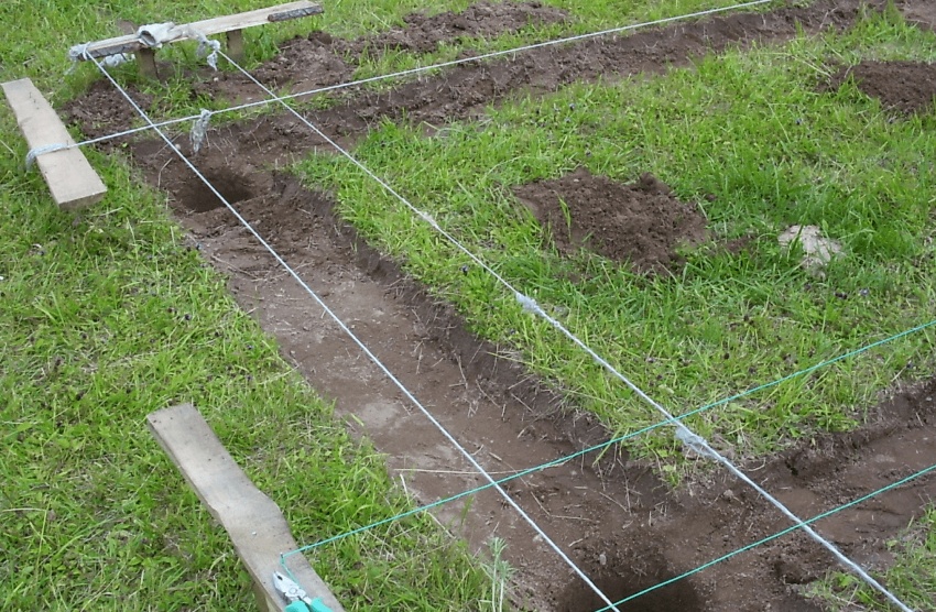 In places where the posts are installed, it is necessary to remove soil with a depth of at least 0.3 m. If concrete slabs are used, they are mounted in the resulting pits. Pillars of a given height are erected from bricks. The base elements can be made of monolithic concrete, filling them with prepared formwork. The resulting construction is level controlled.