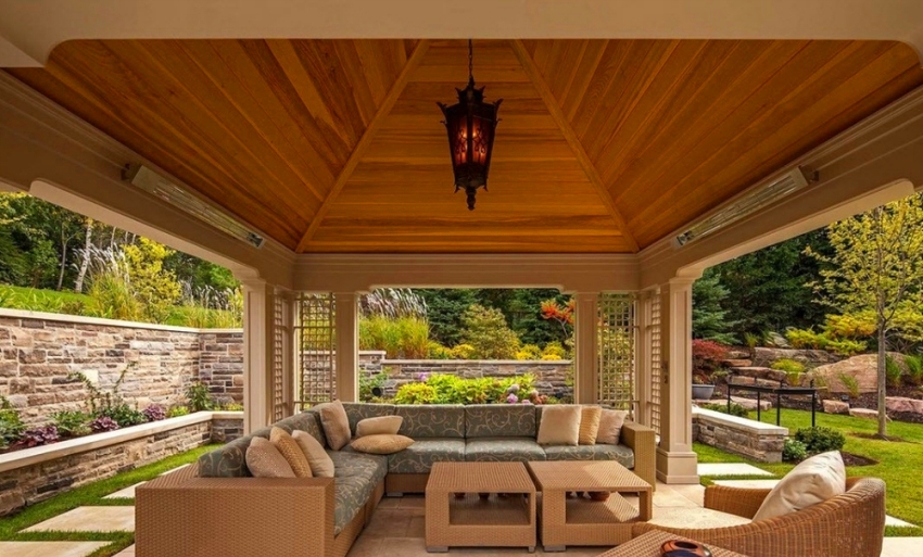 If a closed or semi-closed gazebo is being designed, it should be positioned so that the windows face the beautiful landscape. It is good if at least one of the sides of the building is illuminated by sunlight. Otherwise, it will be cold, dark and uncomfortable in the gazebo.