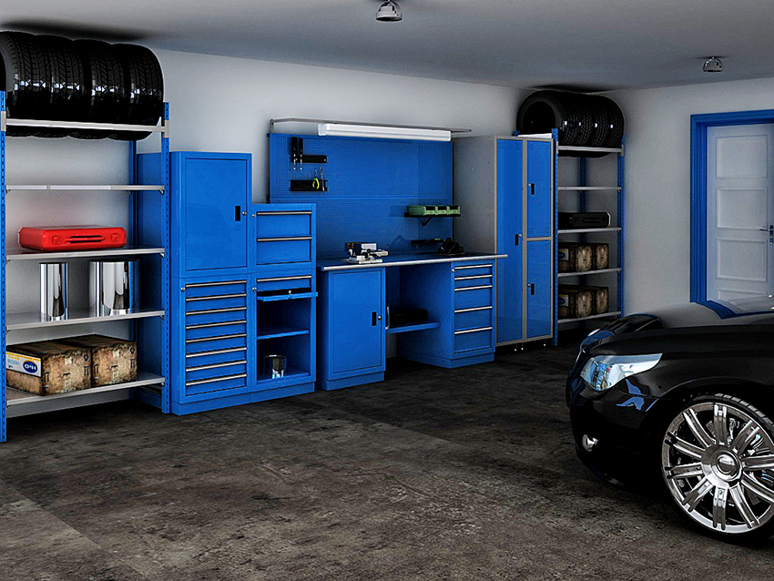 Before starting work on arranging the interior of a garage structure, it is necessary to correctly distribute a specific area for a car and other items. It is important to consider the convenience of machine maintenance and repair. For these purposes, the availability of appropriate tools will be required. For maximum efficiency and ease of use, the garage must be equipped with: