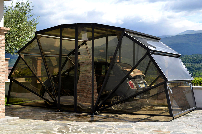 This design is used when you need a temporary parking lot. It is designed for 1-2 years and is most often performed during the construction phase of a residential building. In the future, the temporary structure will be replaced with a more reliable structure. The temporary garage is a prefab. You can buy a garage of this type on the Internet by placing an order on any specialized site.