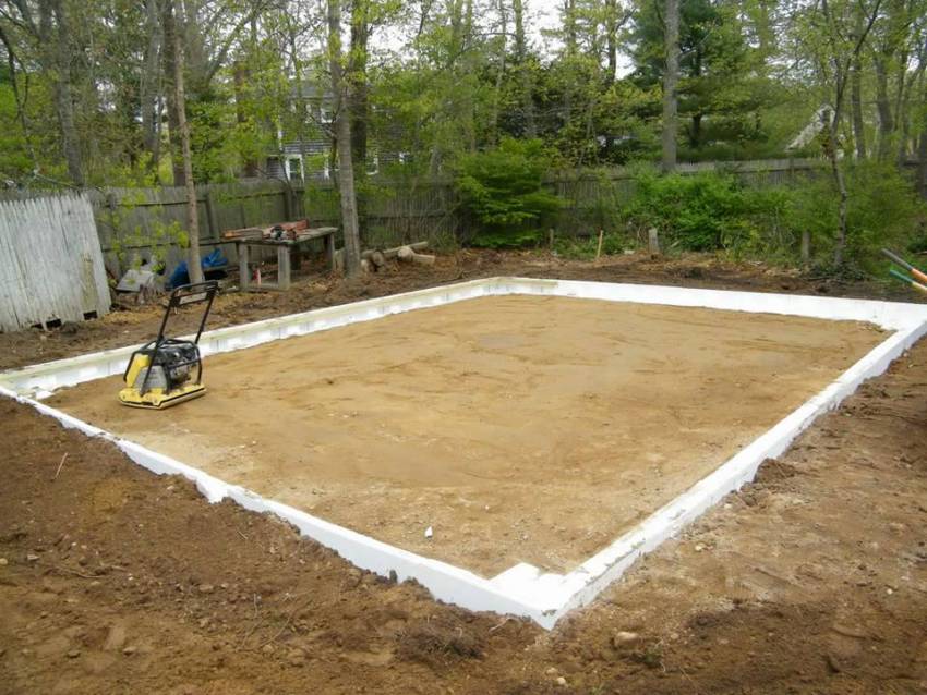 The next thing to do after leveling the soil is to compact the soil. Then gravel is laid on the prepared site. The gravel layer should not be too thick. If desired, you can dilute the stone mass with building sand. This "pillow" should be carefully leveled. A vibratory plate is ideal for this purpose, but if the necessary tool is not available, then you can level the surface manually.