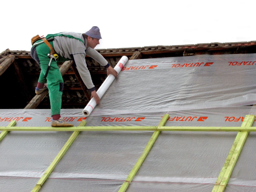The next stage is the installation of waterproofing material (over the lathing). In this case, roofing felt can be used, which is an affordable and popular coating. The second fairly common option is the use of a film located under the roof.