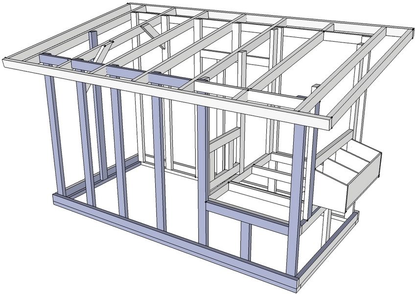 According to the drawings, do-it-yourself photo of chicken coops, it is clear that a frame structure is being erected on the basis of a columnar foundation. Its peculiarity lies in the simplicity and high speed of construction, which makes the construction of a chicken coop not much more difficult than buying a chicken coop for 10 chickens ready-made.