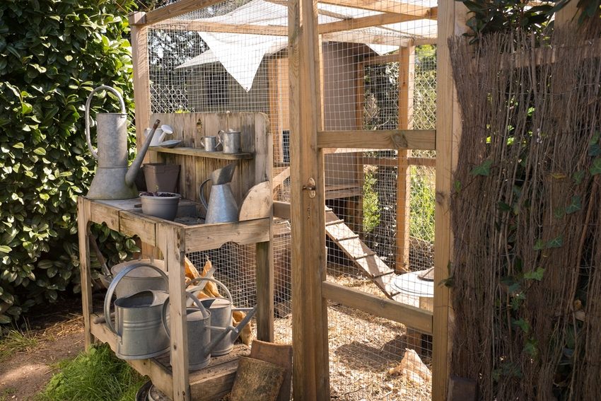 - after completing the construction of the house, cover the enclosure for walking with a net. Do not cover the roof: if it rains, the chickens will easily hide in the poultry house or under it;