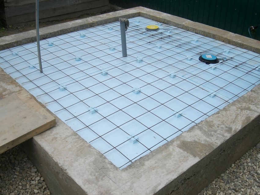 The floor is arranged so that the drains are diverted as far as possible from the foundation of the house. To do this, the site is concreted or you can get by with the installation of a pallet made of acrylic.