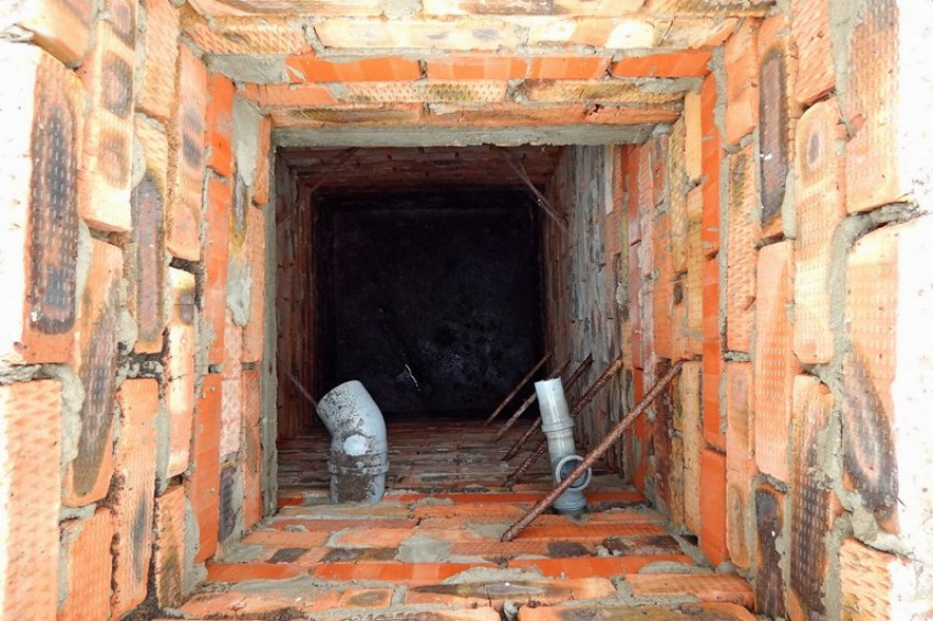 For the construction of the formwork, red brick can be used. Before filling with cement mortar, it is imperative to lay a sewer pipe to drain the wastewater. It is necessary to do this procedure at this stage, since it will be impossible to carry out it later.