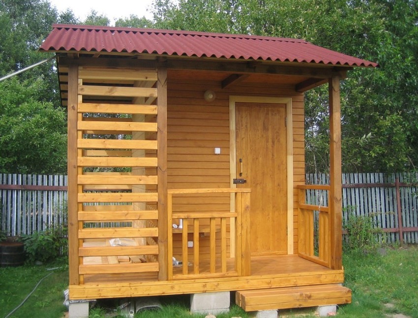 The wooden outdoor shower of the eco-variant is a small building on the site, the significance and benefits of which is undeniable