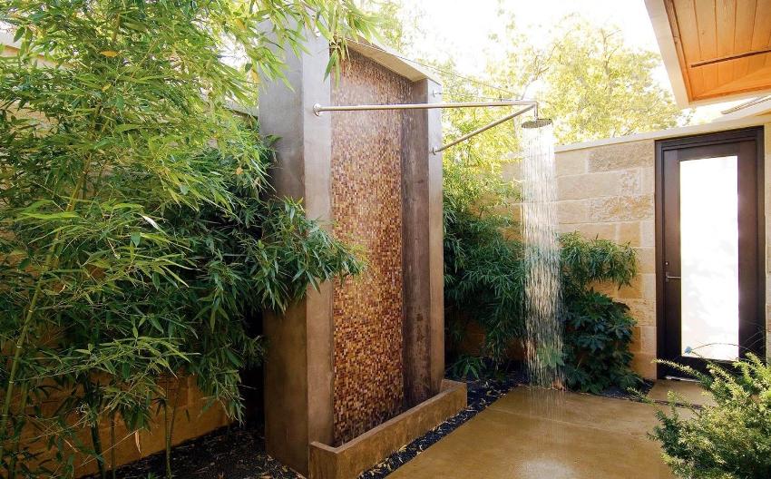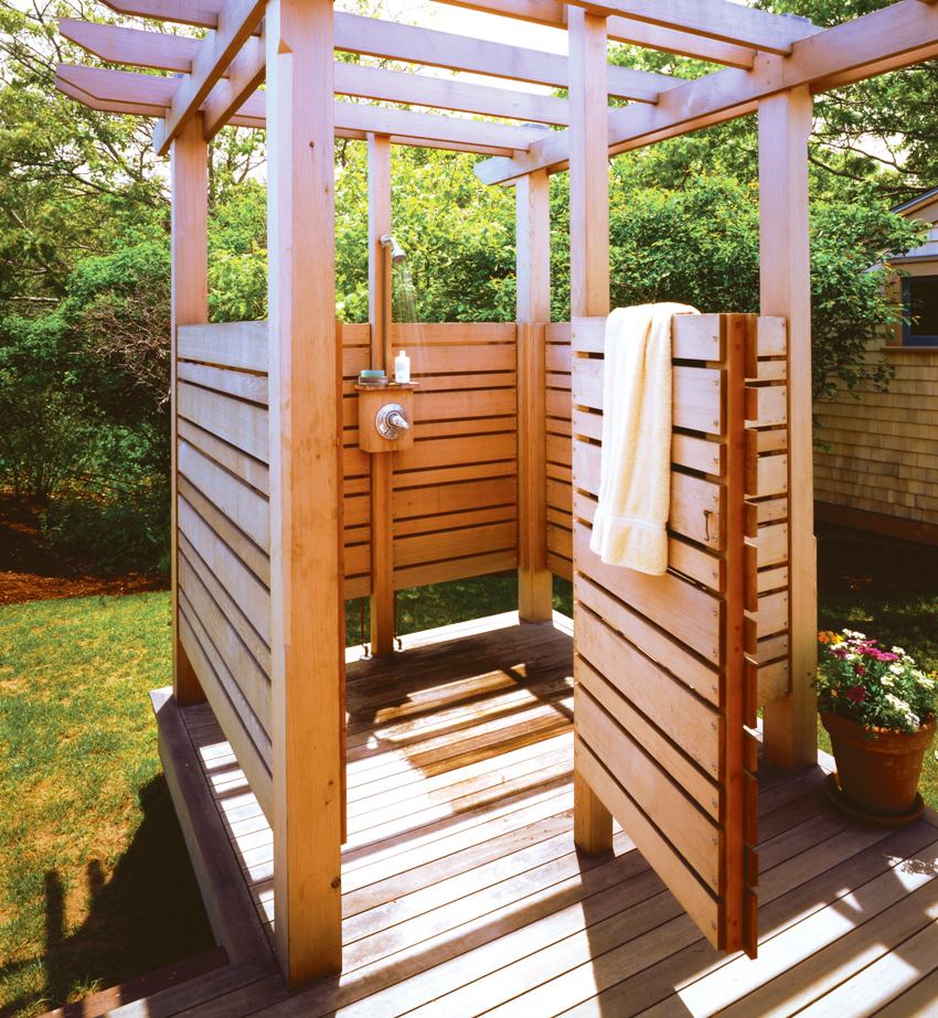 Building an outdoor shower is sometimes the only way to fully clean up after a busy day in the garden, or cool off in the summer heat. This small structure has many options, both from a technical point of view and aesthetics. However, all designs have a similar structure.