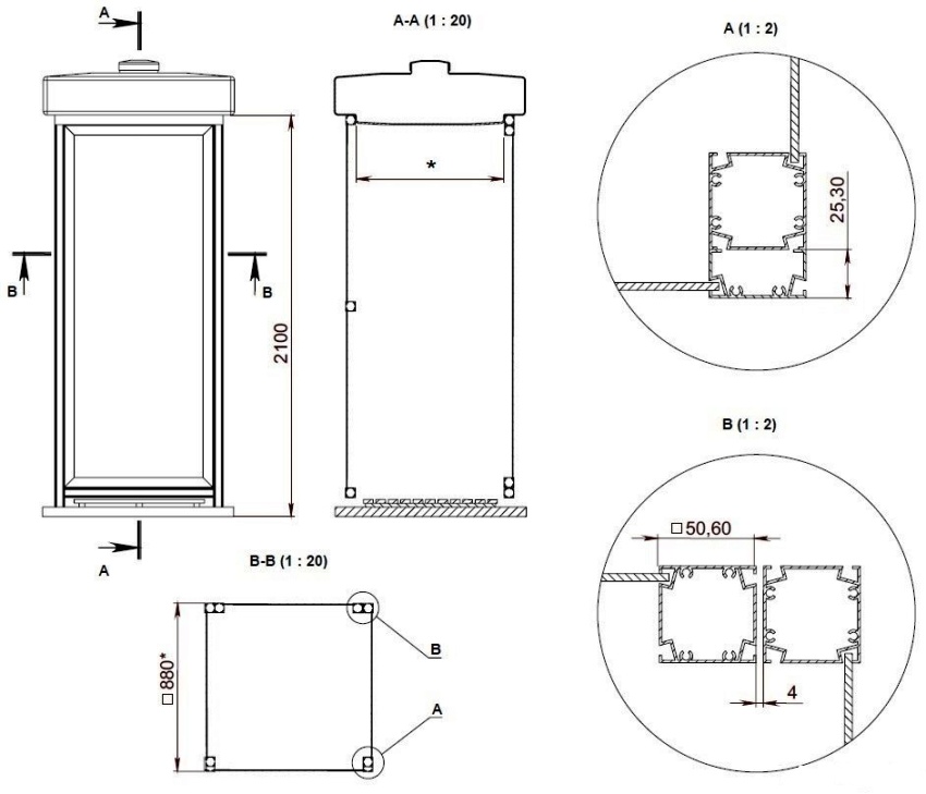 - shower houses of the capital type, in which the walls are made of polycarbonate and other materials.