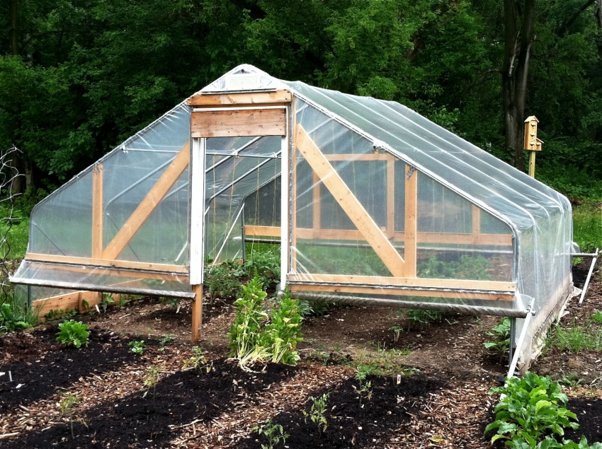 The most economical option for creating a greenhouse is to use plastic wrap and unnecessary wooden boards.