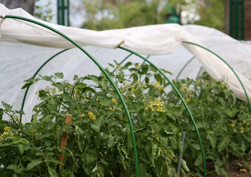 Height arches in the greenhouse for tomatoes should be higher than adult plants to avoid contact of the covering material with fruits and leaves
