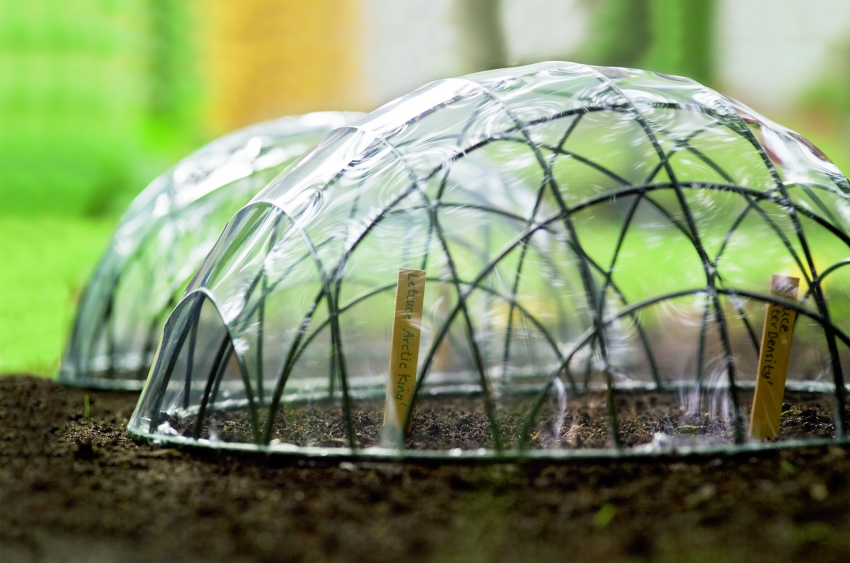 Mini greenhouses for sprouting seeds in the open field can be created using wire, film and a hair dryer to fix polyethylene