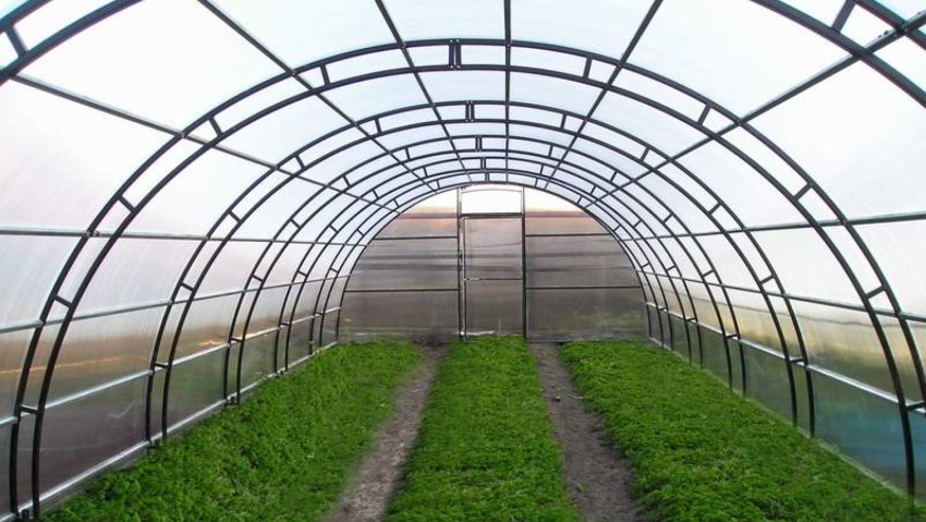 The use of polycarbonate of varying degrees of transparency in the construction of the greenhouse allows creating the necessary conditions for growing certain types of plants