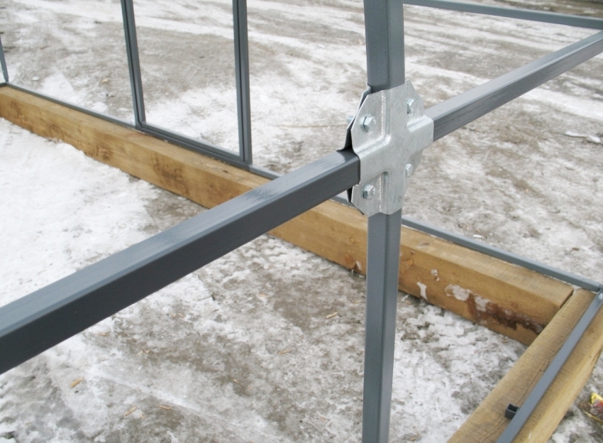 For the construction of a greenhouse from a profile pipe, a foundation made of a processed wooden beam is suitable
