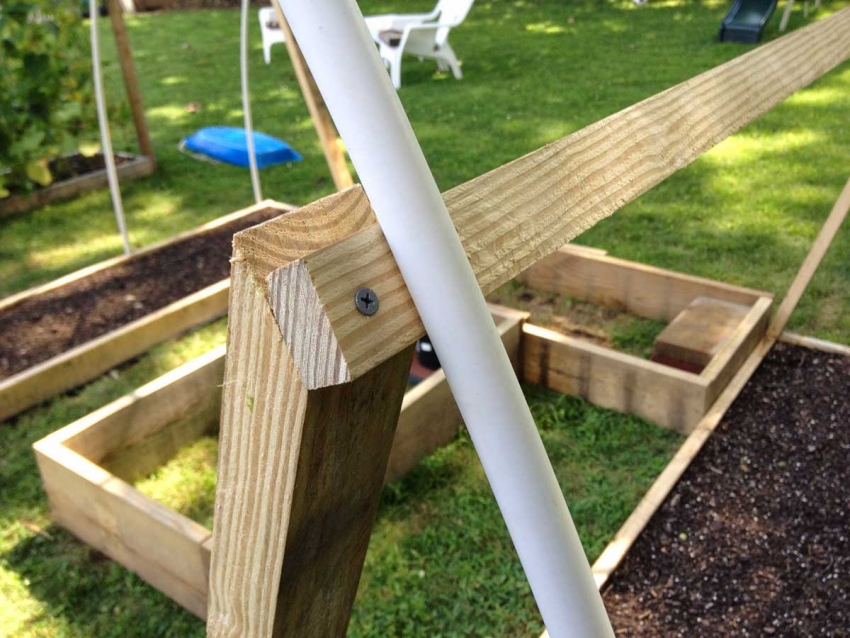 After that, the finished triangles are fastened to each other using bars, the length of which corresponds to the size of the pit. The lower and upper beams also need to be fastened using several (usually 2-3) rails. At this point, the assembly of the frame can be considered complete.