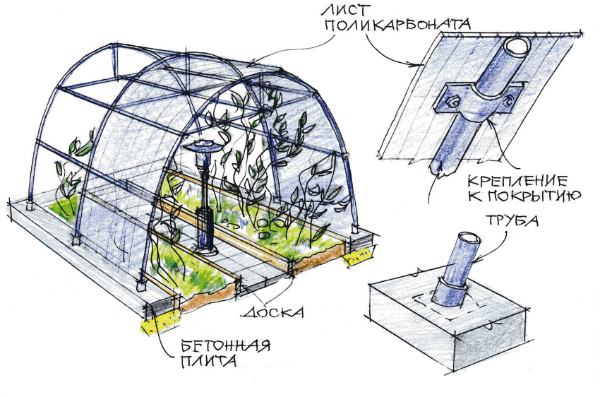 DIY polycarbonate greenhouses: drawings and description of the best models