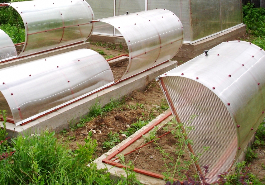 Separately, it is worth considering this type of construction as mini polycarbonate greenhouses. Such an alternative to full-fledged greenhouses, which take up a lot of space and often simply do not fit into the size of standard plots, is increasingly being used by summer residents.