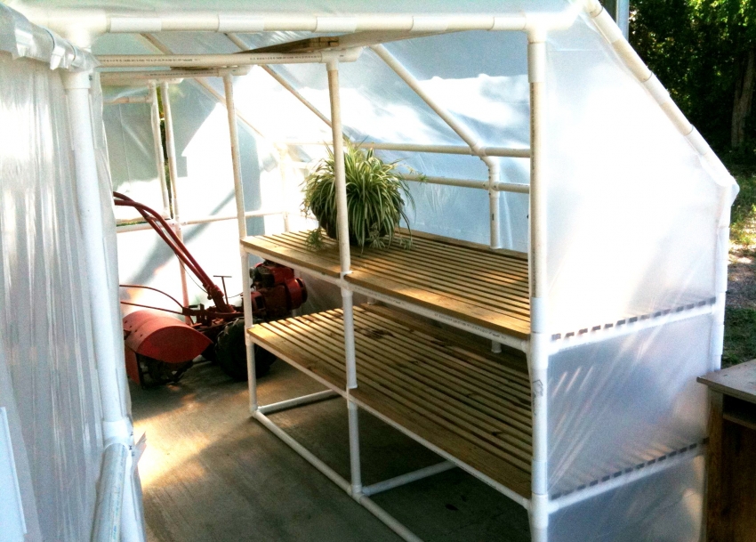 Plastic pipes can be used to build not only the frame of the greenhouse, but also shelves, doors or vents for ventilation