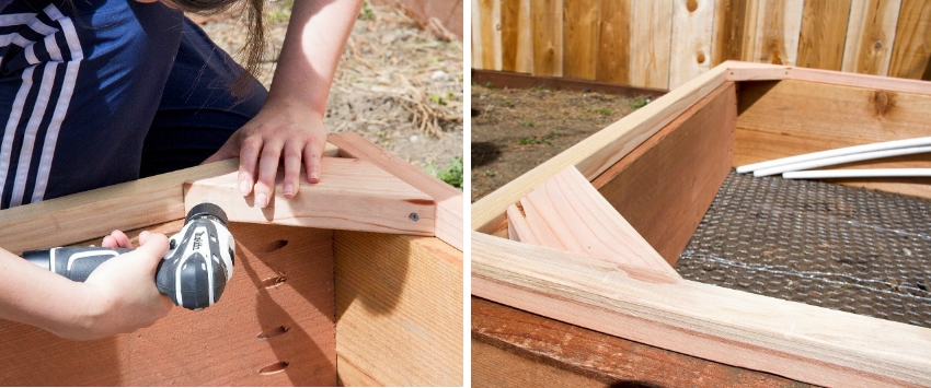 - Finally, galvanized corners are attached and secured with long screws.