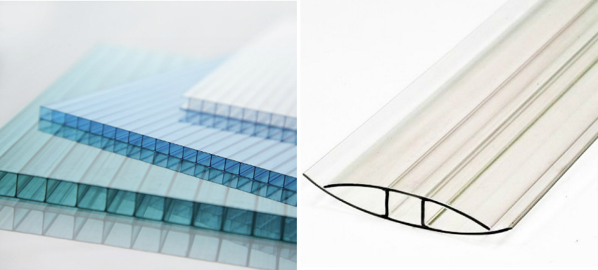 - To strengthen the structure, a special detachable docking profile is used, which is attached with self-tapping screws. Polycarbonate sheets are inserted into it.