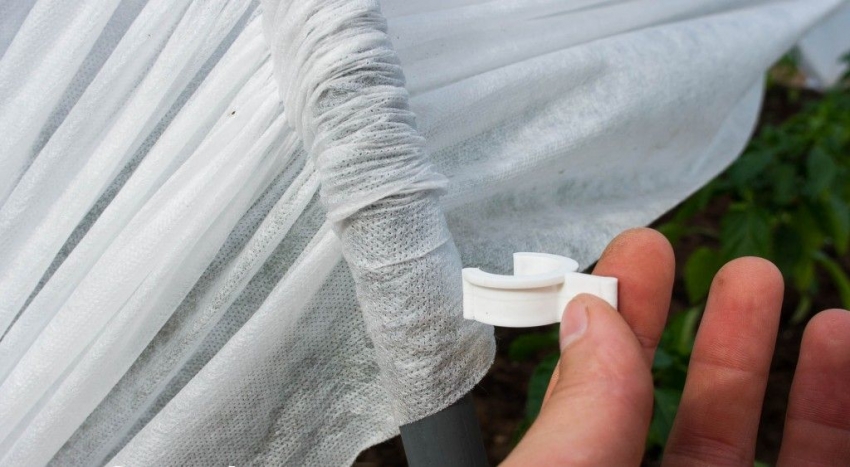 Other options for attaching the film include fixing with ropes, a net throughout the frame, using double-sided tape, and even ordinary self-tapping screws.For the latter method, small pieces of linoleum are required, which will protect the film from damage. You can buy clips for the film on the greenhouse, which are sold in specialized stores and not only provide reliable fastening of the cover, but also greatly simplify the work.
