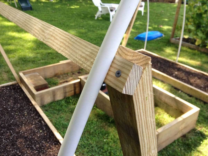 - A long pipe (or two short ones, fastened together) is located in the center of the arcs standing on the base, and is fixed as tightly as possible with clamps or ropes. On this, the assembly of the frame can be considered certified.