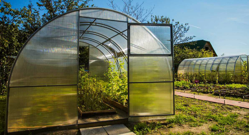 The technical and operational characteristics of polycarbonate have allowed it to take a leading position among the materials that are used to create greenhouses and greenhouses. It is simple enough to cut and fasten it, and at the same time it is resistant to external factors. In addition, it has excellent light transmittance, providing plants with the necessary amount of sunlight.