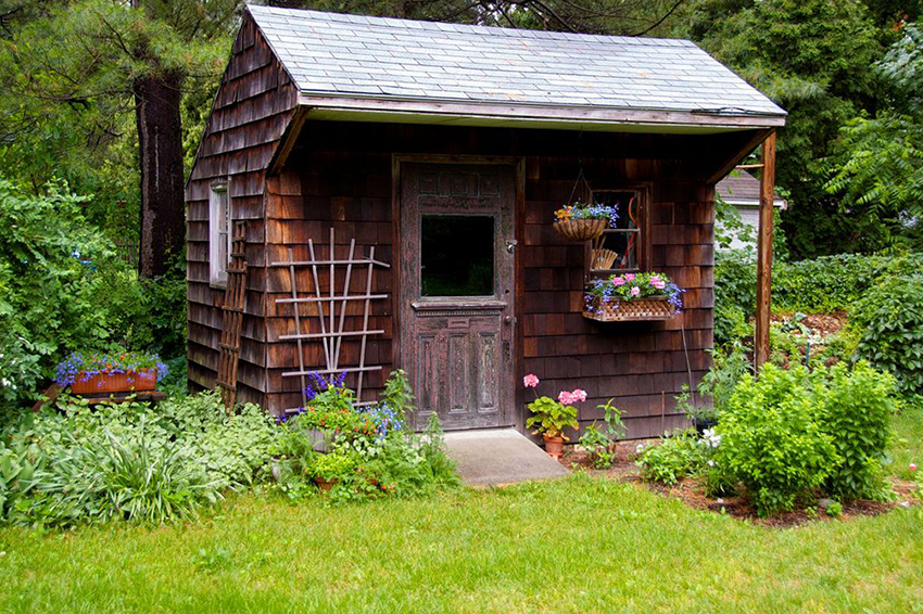 You can use metal tiles, slate, ondulin, flexible shingles, roofing material or profiled sheet as a roofing covering of a shed for summer cottages. One of the most budgetary options is slate, which is characterized by durability, good strength, and weather resistance. However, it is quite fragile and therefore requires careful handling. When installing it, there is no need to fill a reliable crate. The material has low aesthetic properties, which is not so important for a shed in the country.