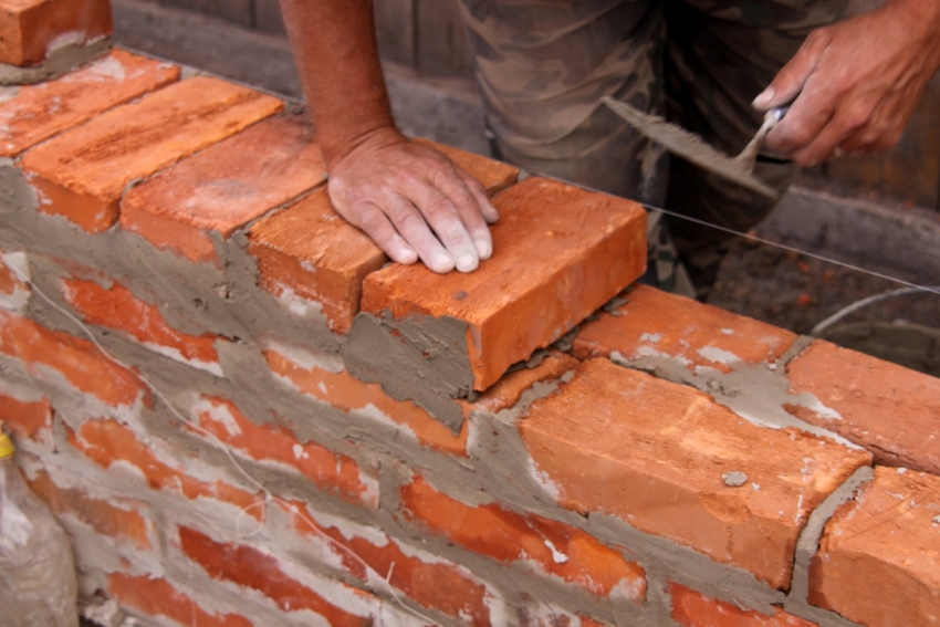 Laying must start from the corner zones. When the first blocks are installed on a cement-sand mortar, their placement is checked. Elements must be located in the same plane. Then you need to pull the string along the top edge. It will be used as a guide for the entire row.