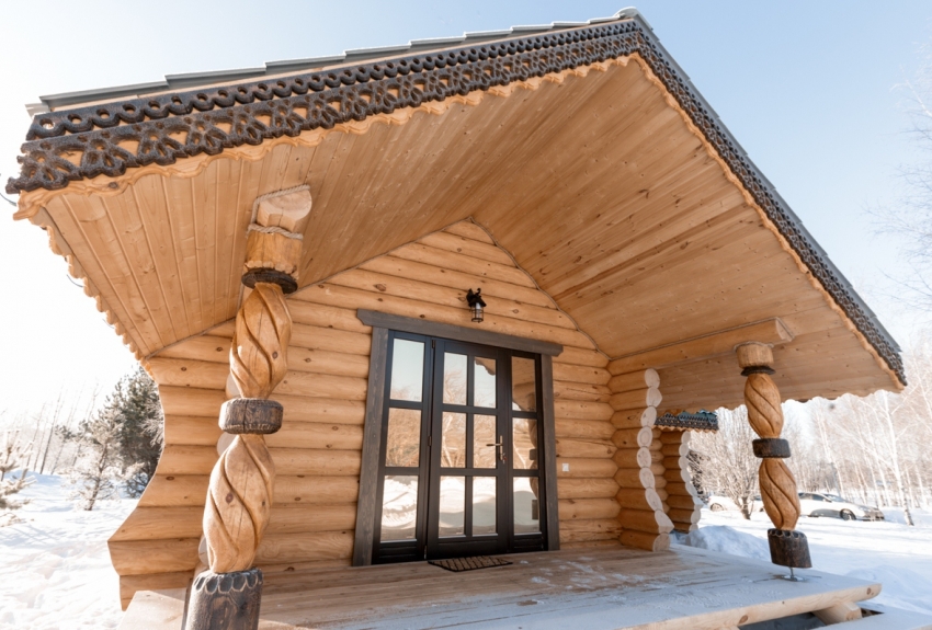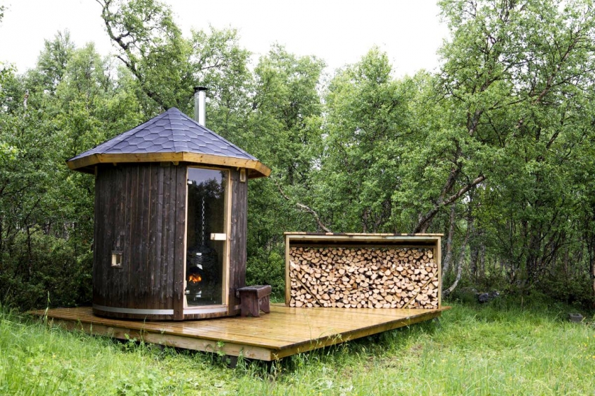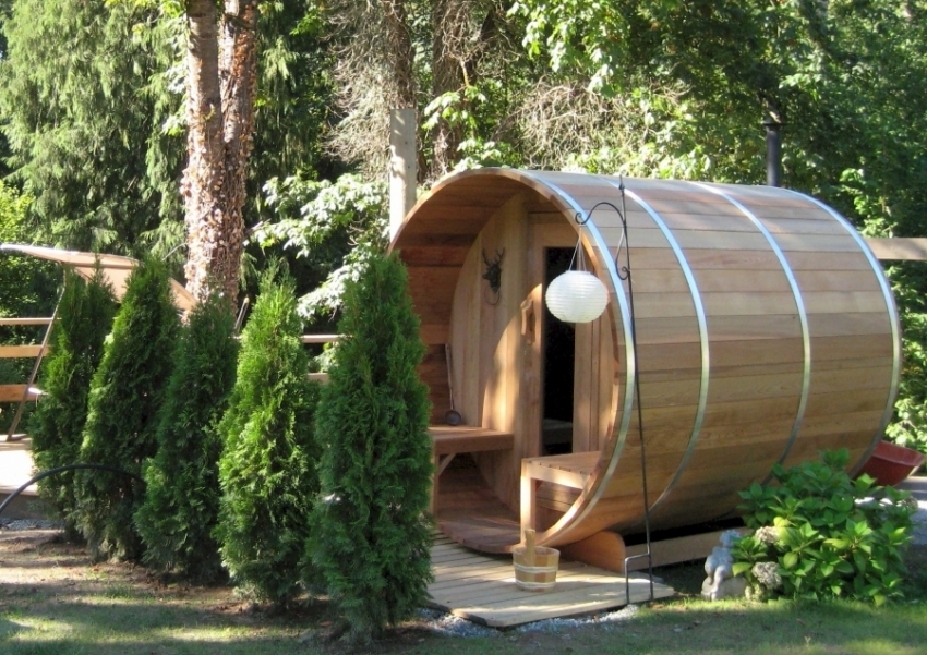 Compact barrel-shaped saunas can be placed right next to a residential building and equipped with a separate entrance, which is convenient in the winter season