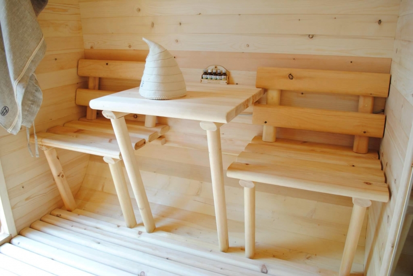 This concludes the construction of the bathhouse. It only remains to install the appropriate heating equipment and furniture. Some of the furnishings can be made by yourself. If there is no desire to make furniture with your own hands, the stores have an extensive selection of special furniture. As a budget alternative, you can use old interior items that, after a small restoration, can last a long time. But you should not use chipboard products, because they very quickly undergo destruction under the influence of moisture.