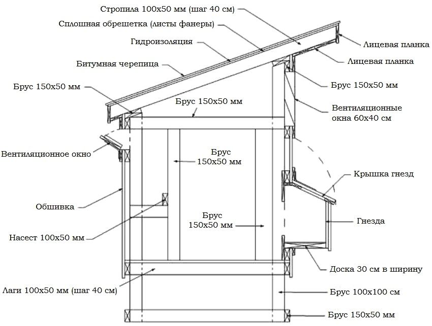 DIY construction of a chicken coop for 20 chickens: drawings
